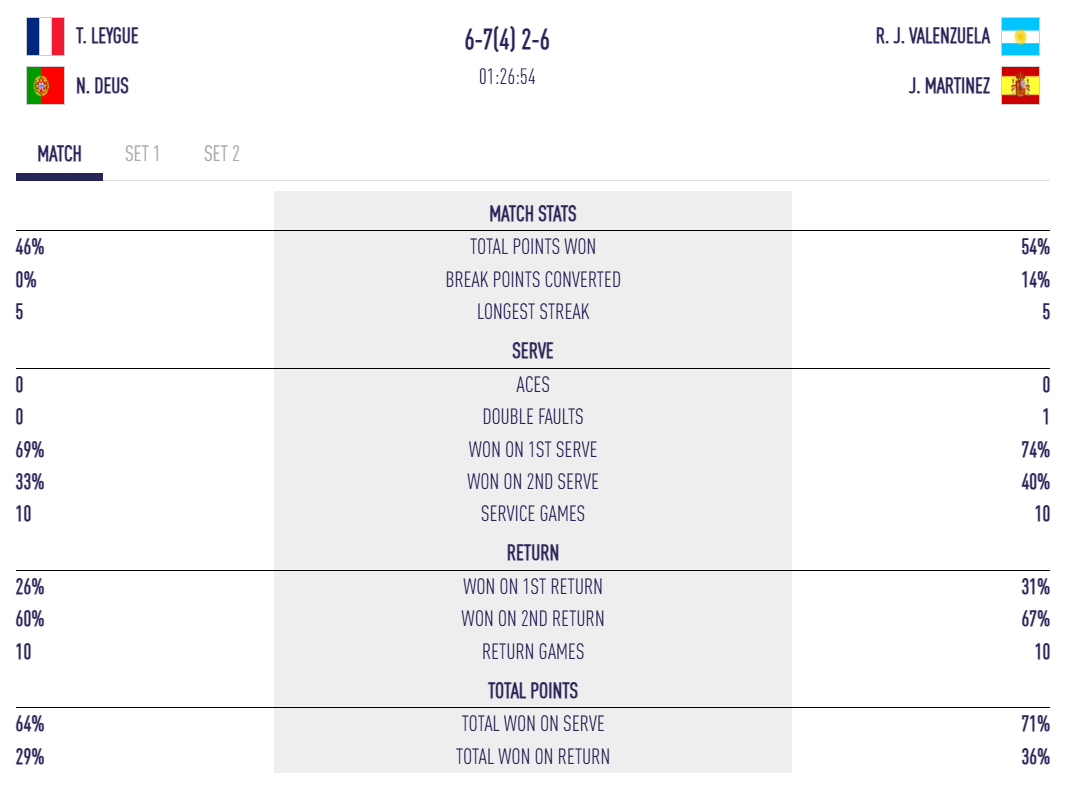 À 5/4 Valenzuela/Martínez obtenen dues boles posades ... salvats per Leygue i Deus, que van aguantar per portar el set a un tie-break.