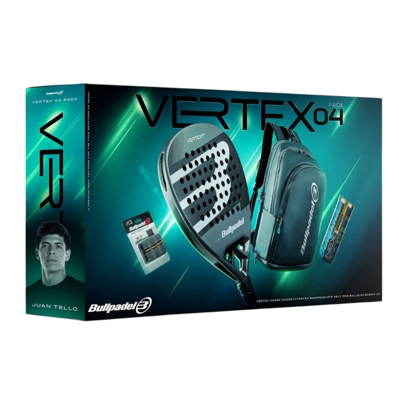 Una versió més còmoda del Vertex, més tolerant i més suau a l'impacte, que s'ofereix aquí en empacar amb la motxilla Bullpadel Vertex Grey, un tub de bales Bullpadel Next Pro i un paquet de tres sobregrips Bullpadel Confort.